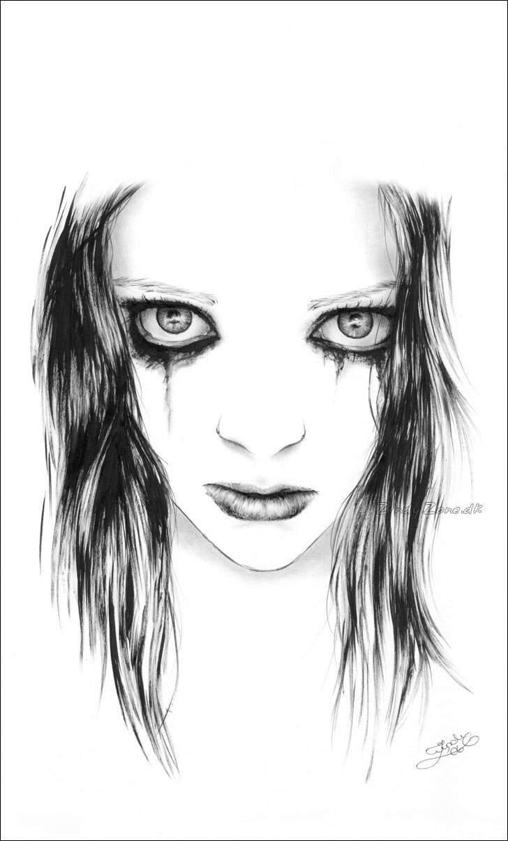 I didn’t have a plan before doing this actually, just wanted to draw some dark eyes. Used a photo of myself for reference but didn't attempt to make it look like me, just needed the position. Thought she looked a bit like one of these white dolls, a scary one.